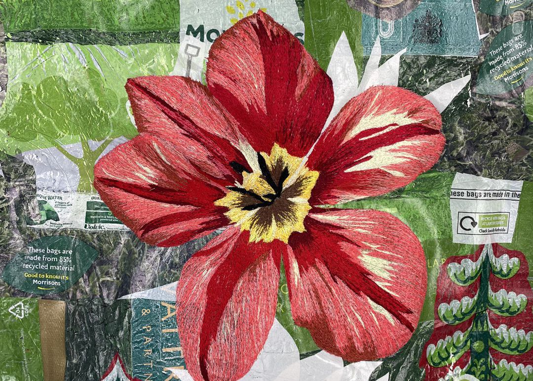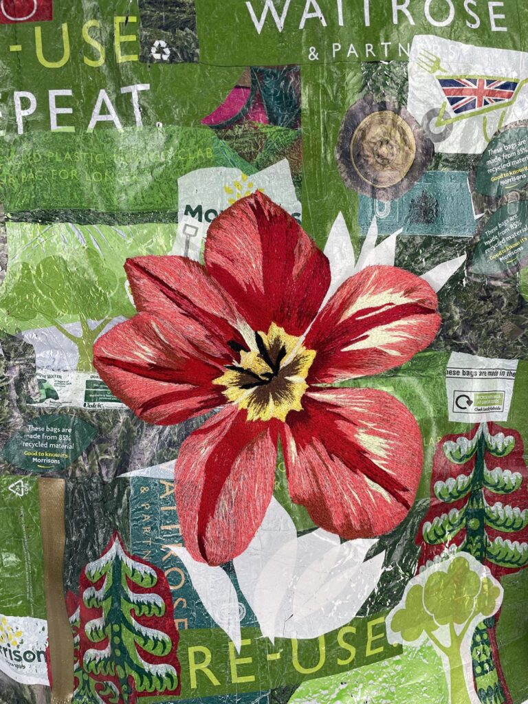 My work is inspired by the world around me, particularly the beauty found in nature. Visits to galleries such as the Saatchi Gallery, the Barbican, and Kew Gardens, alongside a range of workshops, have influenced the development of my collection. I see embroidery as unique and one-of-a-kind, with every stitch creating something individual. I love using my domestic machine to blend threads and colours, often working sustainably by melting plastic bags to form a base for embroidery. This creates striking, textural surfaces that highlight the possibilities of reusing waste. Alongside this, I have explored goldwork embroidery using materials from Hand & Lock, producing high-end, detailed pieces. My designs reflect natural forms such as flowers and leaves, combining primary imagery I have gathered across Europe into fashion and textile pieces that celebrate both craftsmanship and sustainability. I hope my work encourages people to appreciate the time and care behind handmade pieces while recognising the importance of creating art that respects and protects the natural world.