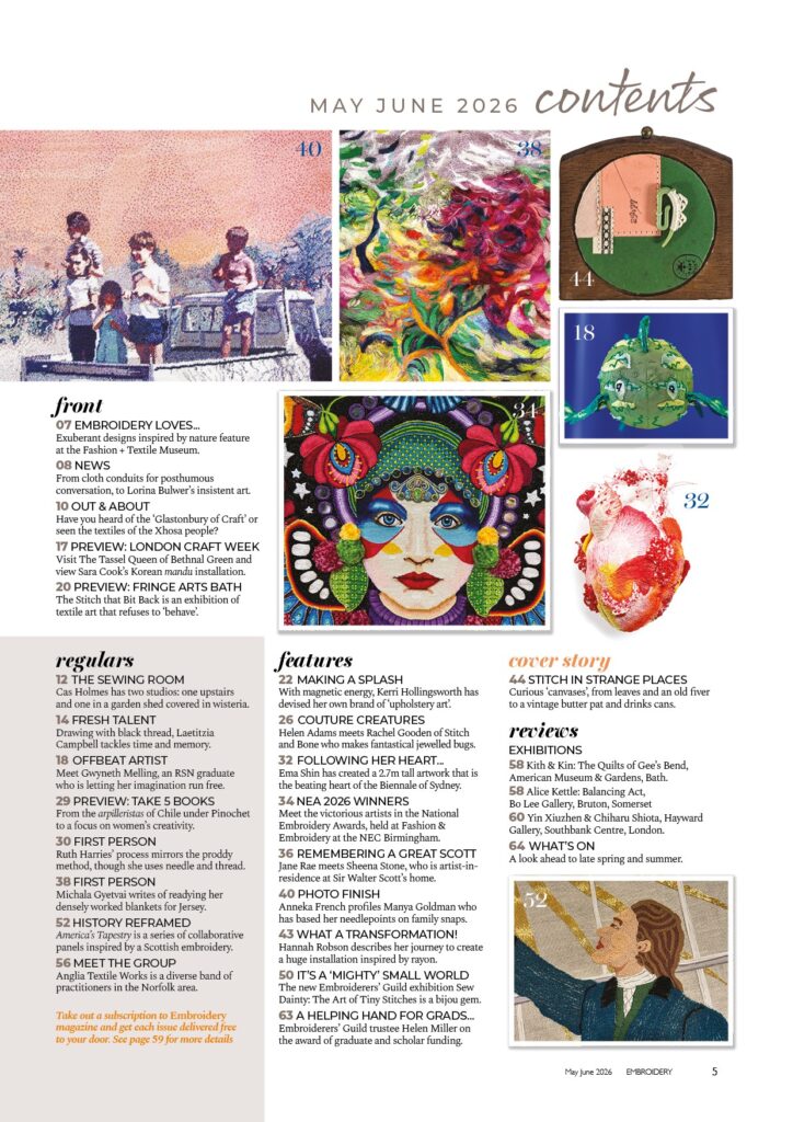 With a wealth of fresh content, the May/June issue of Embroidery magazine is brimming over with uplifting and thought-provoking stories.