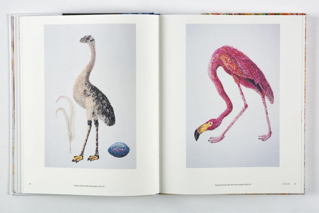 There are many artists who inspire, Louise has reinterpreted historical artists’ paintings such as Elizabeth Gould, Maria Sybilla Merian, Ellis Rown, John James Audubon, Johannes Vermeer and Frida Kahlo (among others). In addition to inspiration this work has also provided the opportunity to link historically marginalised heritage-craft materials with painting.