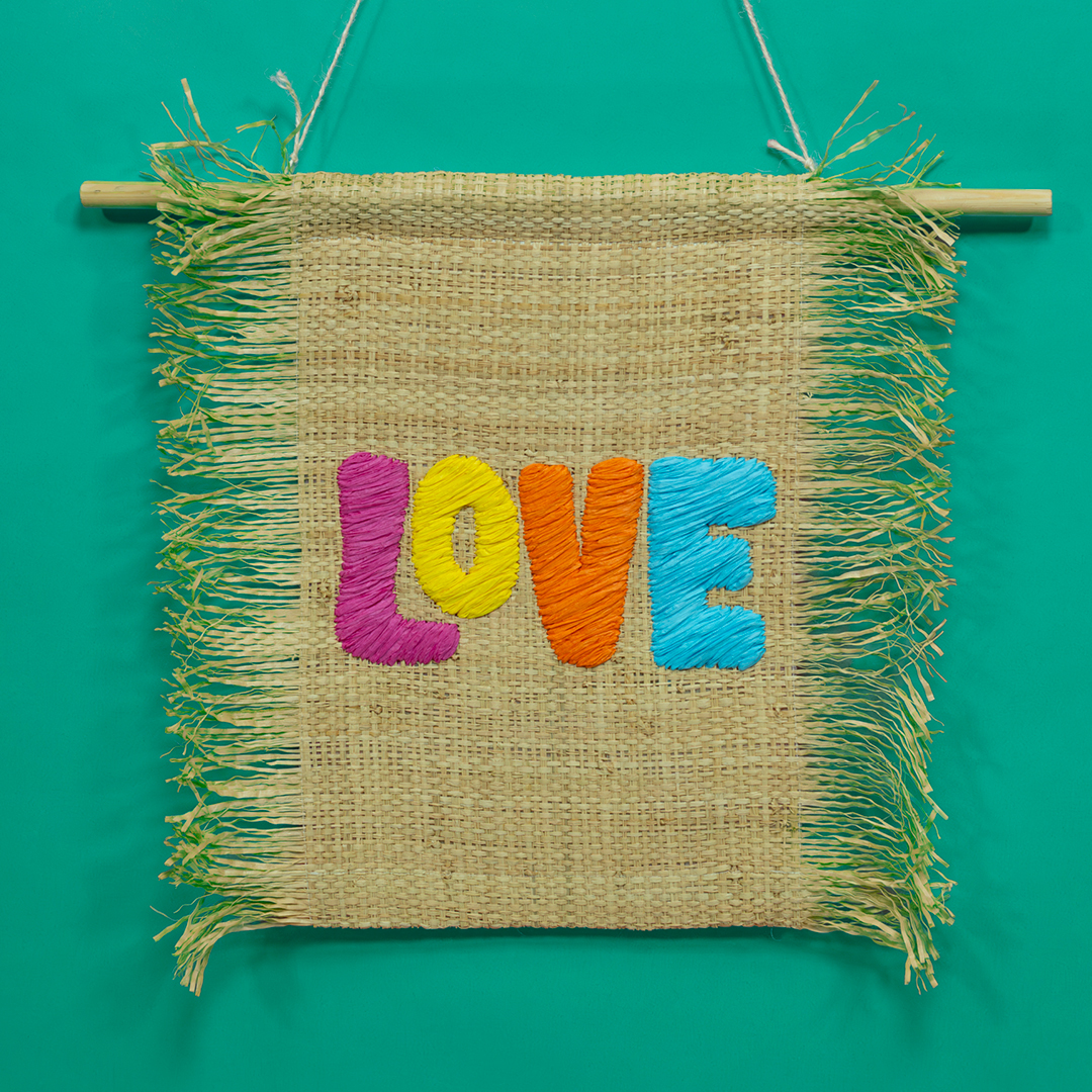 Tihara Smith uses raffia embroidery to create this bold and beautiful wall hanging