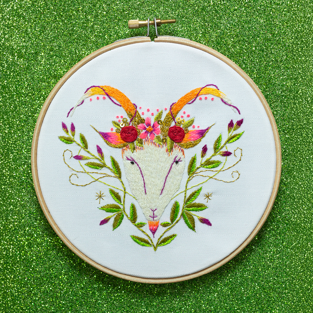 Katy Horwood’s exclusive series continues with the striking Capricorn design featuring delicate goldwork