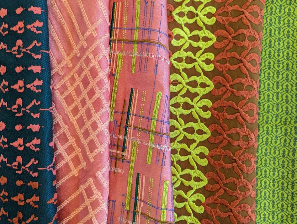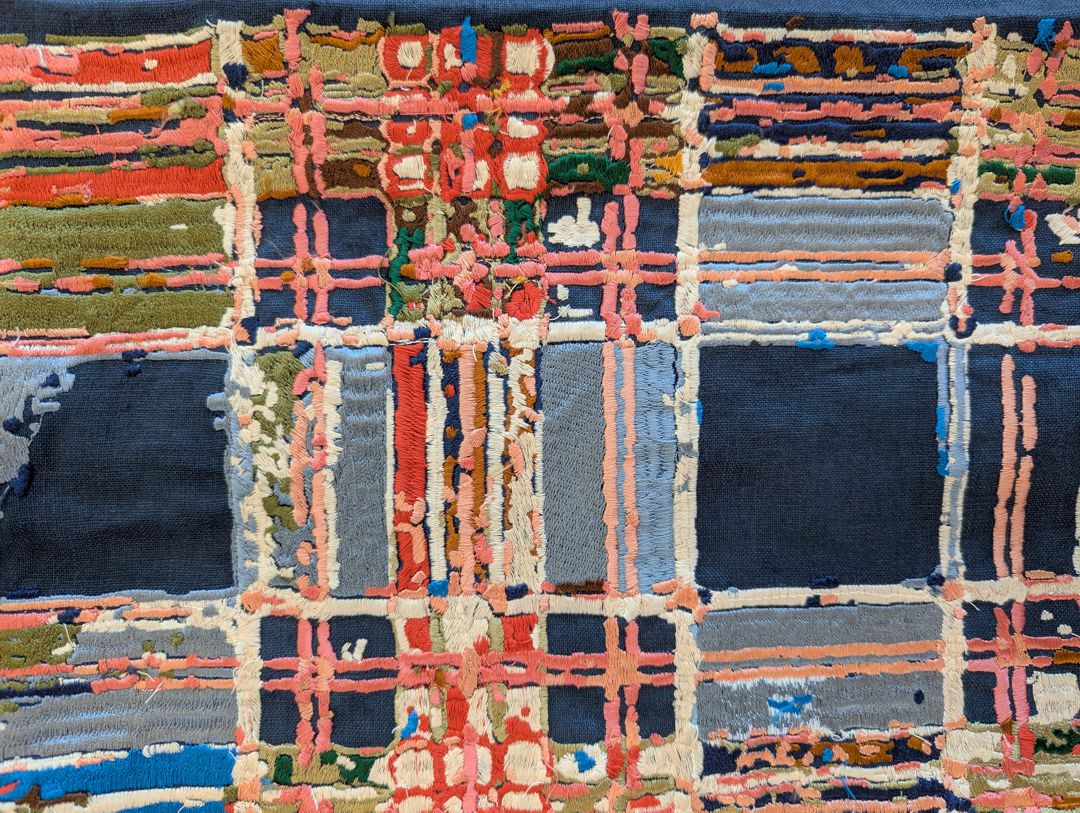 I approach my practice through conceptual enquiry, driven by a voracious curiosity and a compulsion to explore process. Working across digital and hand embroidery, weave, and print, I allow the concept to lead the making — letting materiality and colour nuances emerge through investigation rather than prescription. Drawing inspiration from language, history, and human connection, I explore how tactility unites us — revealing the language, resonance, and power of material in a continual quest to make it meaningful.